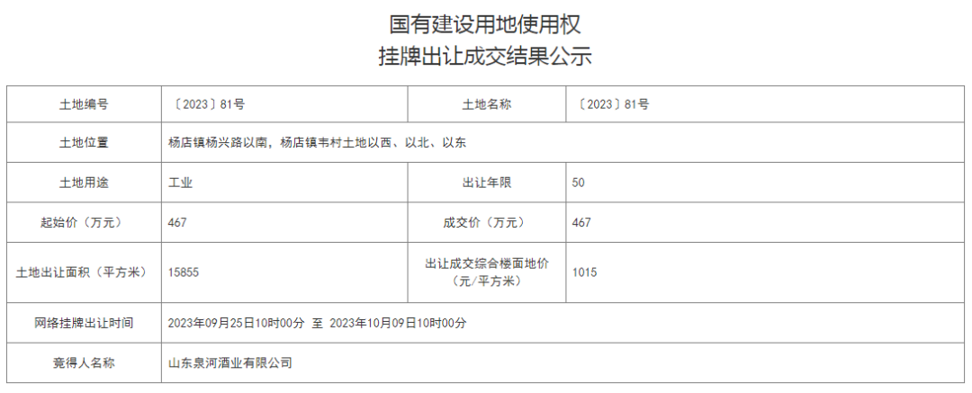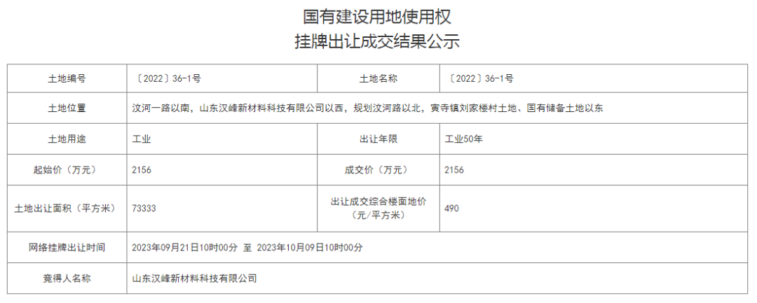 ● 汶上县成功出让一宗土地